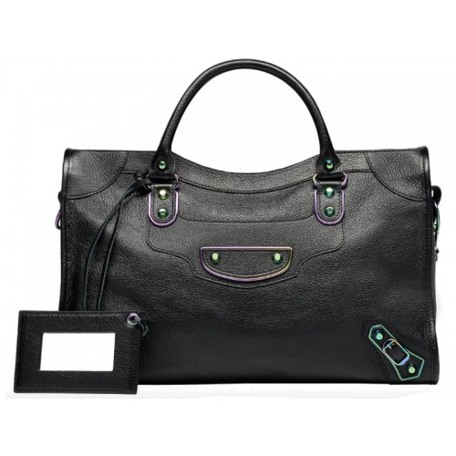 Balenciaga Classic Metallic Edge Iridescent City Bag Black