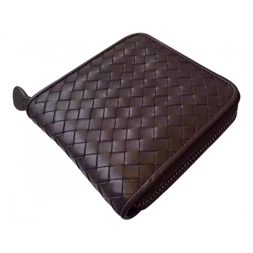 Bottega Veneta Bi-Fold Zip Wallet In Intrecciato Choclate