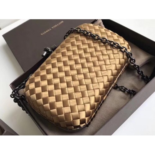 Bottega Veneta Knot Clutch In Boucher Intreccio Gold