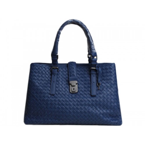 Bottega Veneta Roma Intrecciato Leather Tote Dark Blue