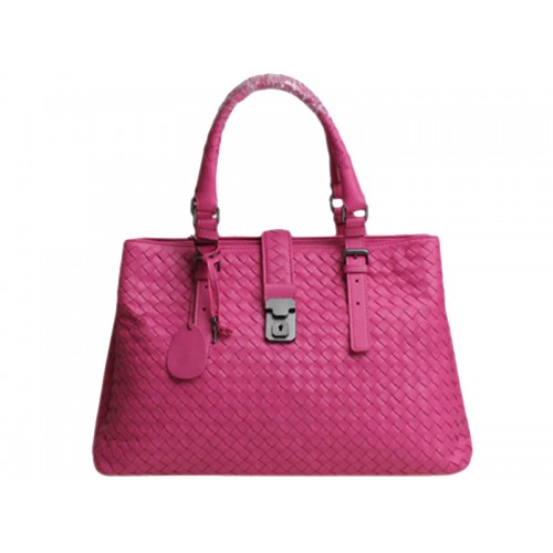 Bottega Veneta Roma Intrecciato Leather Tote Hot Pink