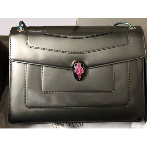 Bvlgari Flap Cover Serpenti Forever 28cm Metallic Calfskin Grey