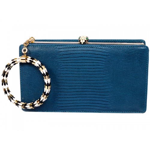 Bvlgari Serpenti Framed Pochette In Lizard Skin Blue