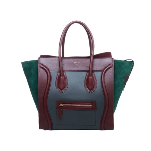 Celine Luggage Medium Tote In Calfskin Grey/Wine/Suede Green