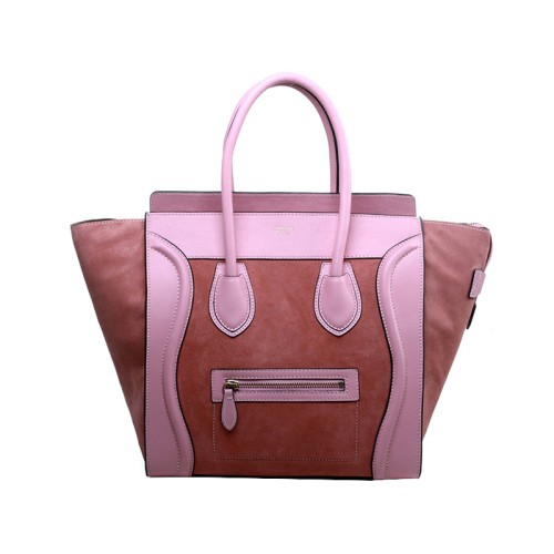 Celine Luggage Medium Tote In Calfskin Pink/Suede