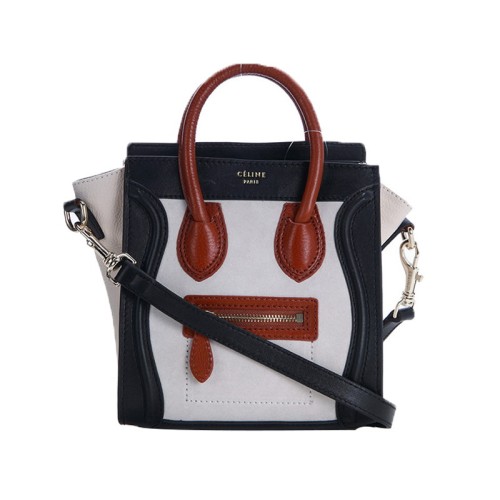 Celine Luggage Mini Tote In Calfskin Black Brown/Suede Cream