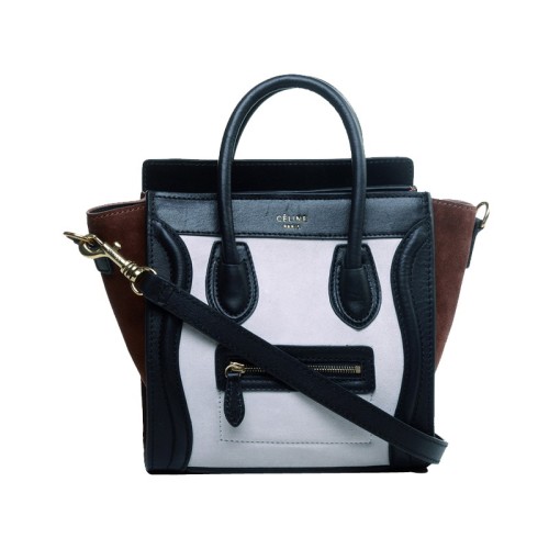 Celine Luggage Mini Tote In Calfskin Black /Suede White Brown