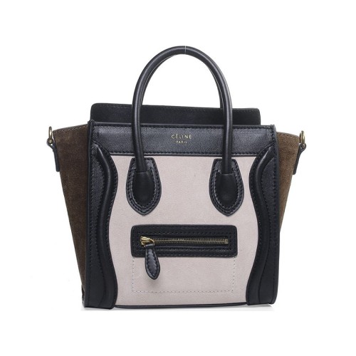 Celine Luggage Mini Tote In Calfskin Light Beige/Suede Olive