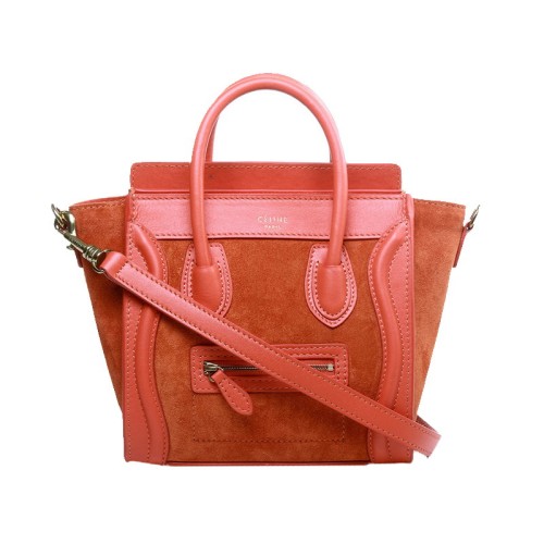 Celine Luggage Mini Tote In Calfskin Orange/Suede Orange