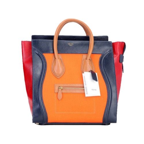 Celine Luggage Large Tote In Calfskin Blue/Canvas Orange