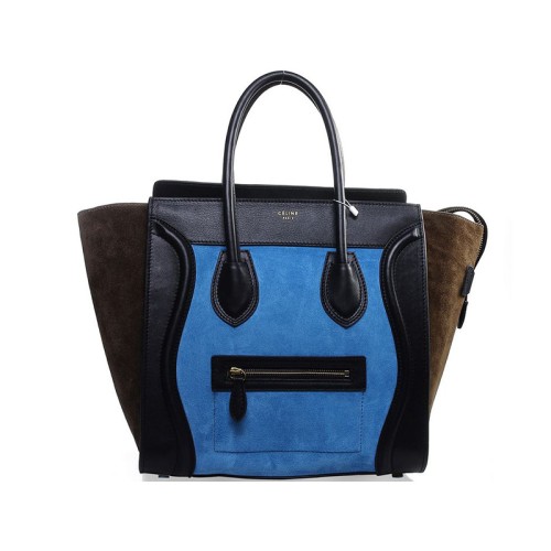 Celine Luggage Medium Tote In Calfskin Black/Suede Light Blue