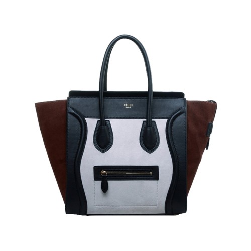 Celine Luggage Medium Tote In Calfskin Black/Suede White/Brown