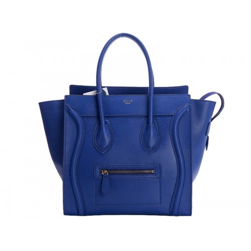 Celine Luggage Medium Tote In Calfskin Bright Blue