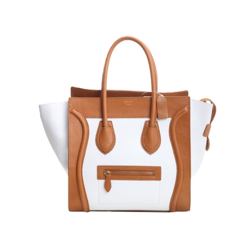 Celine Luggage Medium Tote In Calfskin Camel/White