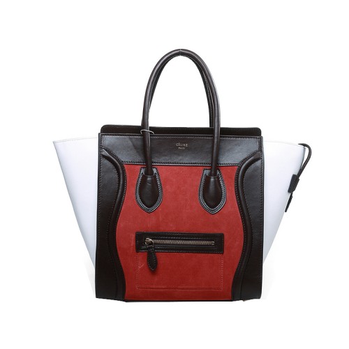 Celine Luggage Medium Tote In Calfskin Choco/White /Suede Orange
