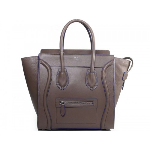 Celine Luggage Medium Tote In Calfskin Khaki With Blue Trim
