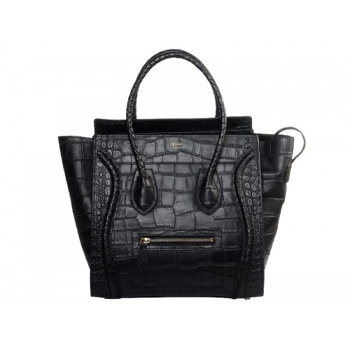 Celine Luggage Medium Tote In Croc Leather Black
