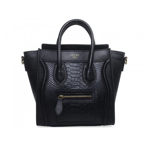 Celine Luggage Mini Tote In Calfskin Black With Black Snake Leather