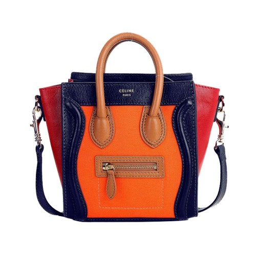 Celine Luggage Mini Tote In Calfskin Blue/ Canvas Orange