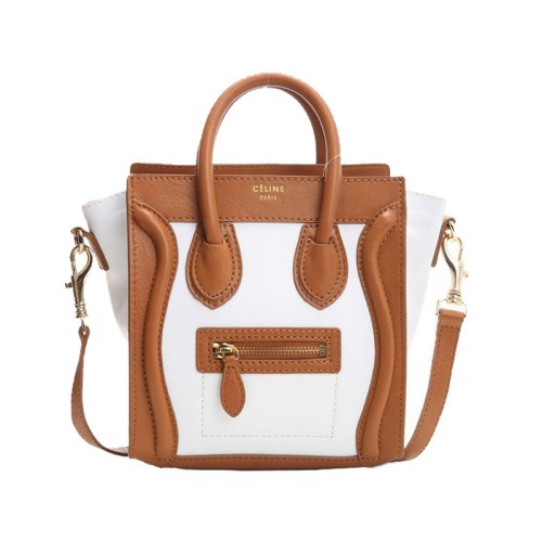 Celine Luggage Mini Tote In Calfskin Camel/White