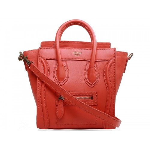 Celine Luggage Mini Tote In Calfskin Cherry