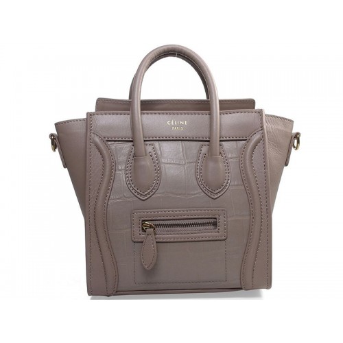 Celine Luggage Mini Tote In Calfskin Khaki With Croc Leather