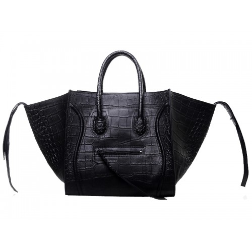 Celine Luggage Phantom Square Tote Bag Croc Leather Black