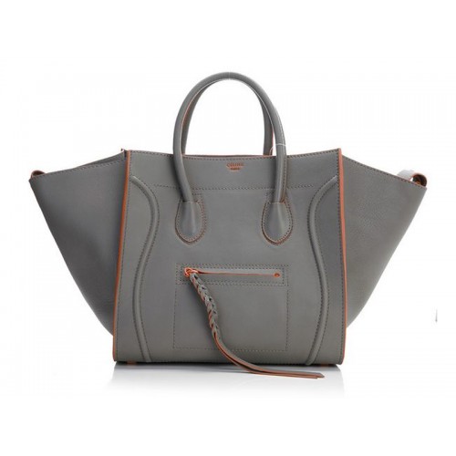 Celine Luggage Phantom Square Tote Bag Grey With Orange Trim