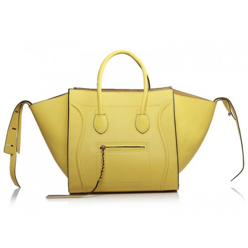 Celine Luggage Phantom Square Tote Bag Lemon With Black Trim