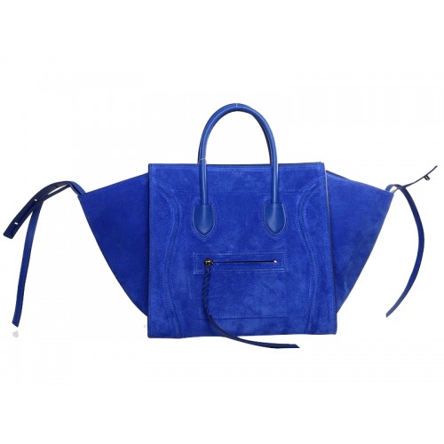 Celine Luggage Phantom Square Tote Bag Suede Leather Bright Blue