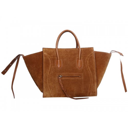 Celine Luggage Phantom Square Tote Bag Suede Leather Camel