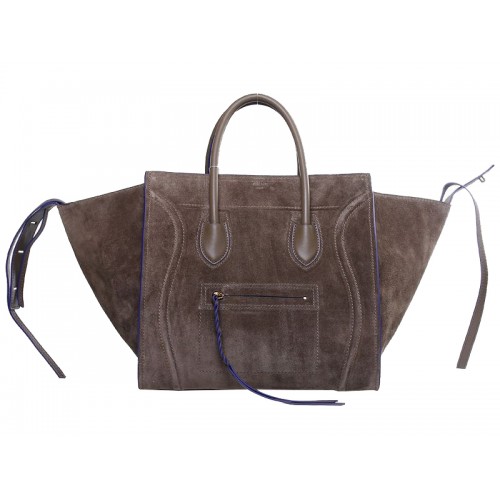 Celine Luggage Phantom Square Tote Bag Suede Leather Khaki With Blue
