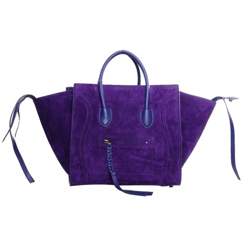 Celine Luggage Phantom Square Tote Bag Suede Leather Purple