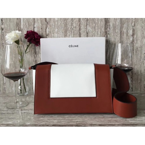 Celine Medium Frame Shoulder Bag Calskin Burgundy And White