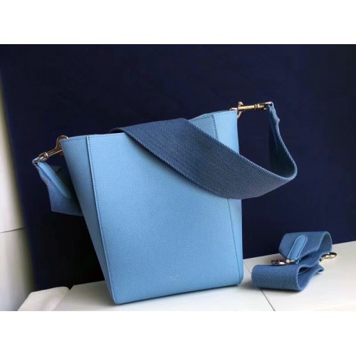 Celine Sangle Small Bucket Bag In Soft Grained Calfskin Blue