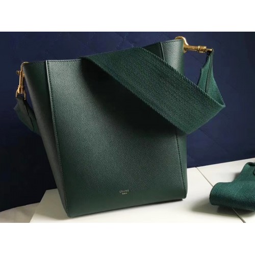 Celine Sangle Small Bucket Bag In Soft Grained Calfskin Green