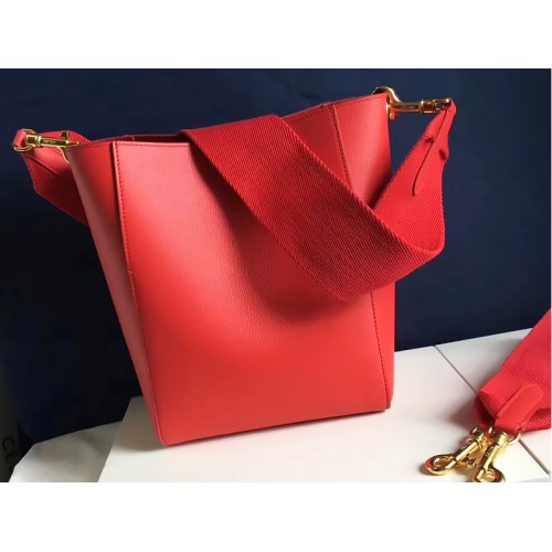 Celine Sangle Small Bucket Bag In Soft Grained Calfskin Red