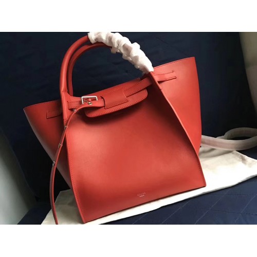 Celine Small Big Bag With Long Strap In Supple Grained Calfskin Red