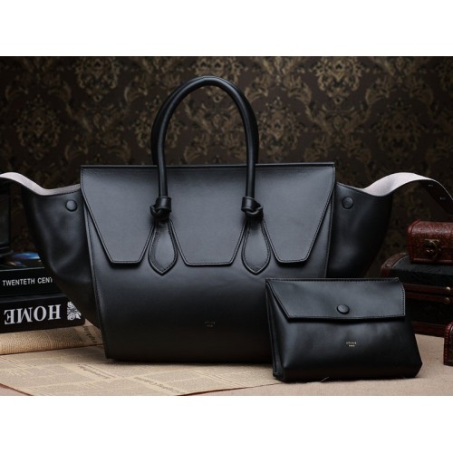 Celine Tie Nano Top Handle Bag Leather Black 2