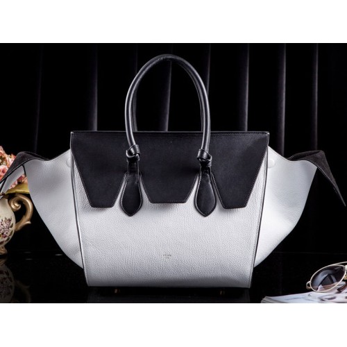 Celine Tie Nano Top Handle Bag Leather White & Black