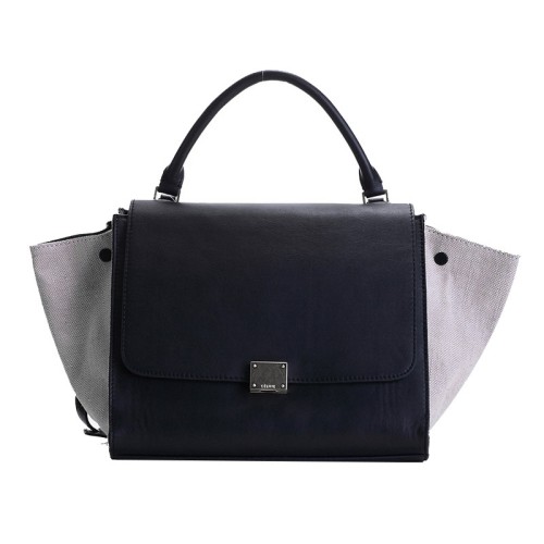 Celine Trapeze Shoulder Bag Calfskin Black/Cream Canvas