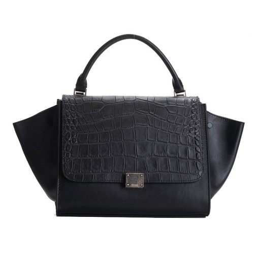 Celine Trapeze Shoulder Bag Calfskin Croc /Black
