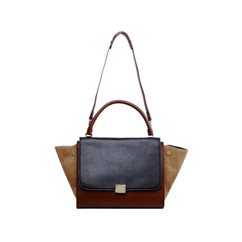 Celine Trapeze Shoulder Bag Multicolor Calfskin Black / Wine/Brown