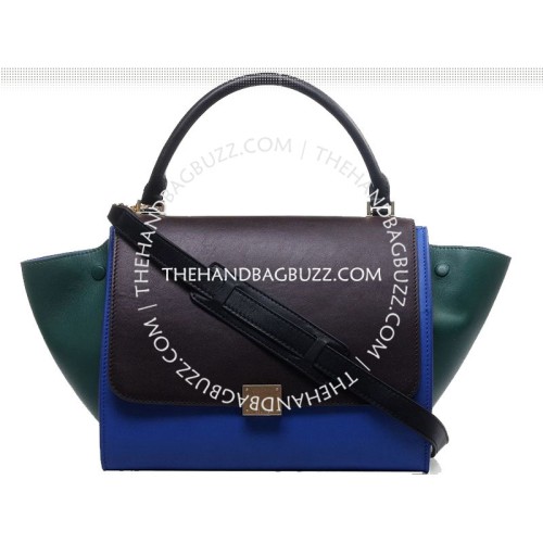 Celine Trapeze Shoulder Bag Multicolor Calfskin Brownish/Blue /Green