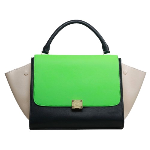 Celine Trapeze Shoulder Bag Multicolor Calfskin Green/Black/Cream