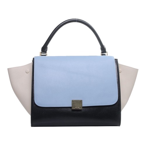 Celine Trapeze Shoulder Bag Multicolor Calfskin Light Blue/Black/Cream
