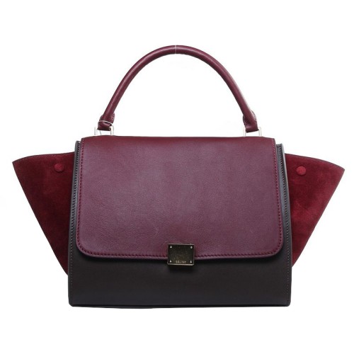 Celine Trapeze Shoulder Bag Multicolor Calfskin Wine/Brown /Wine