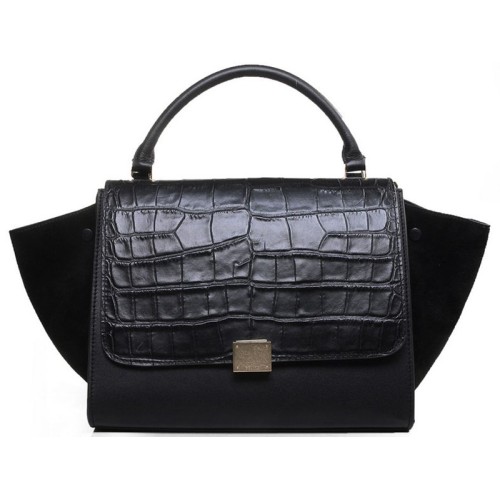 Celine Trapeze Shoulder Bag Multicolor Croc Leather Black/Suede Black