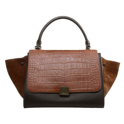 Celine Trapeze Shoulder Bag Multicolor Croc Leather Dark Brown/Khaki/Suede Brown