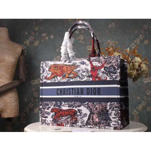 Dior Book Tote bag in canvas embroidered with a multicolour and blue Toile de Jouy motif.